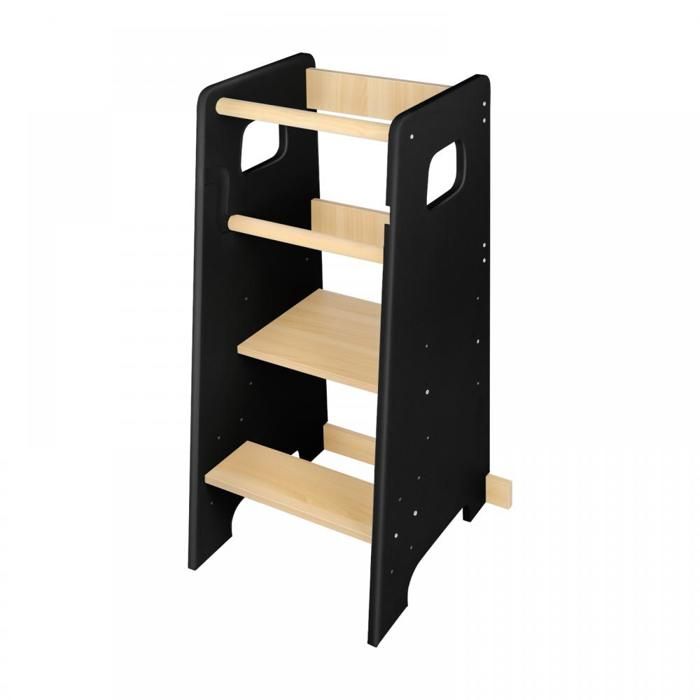 defiPad Tour d Observation Enfant Montessori - Stable & Sécurisée, Hauteur réglable sur 3 Niveaux - Tour d'apprentissage - Fabriqué en Europe - Learning Tower/Toddler Tower - Noir