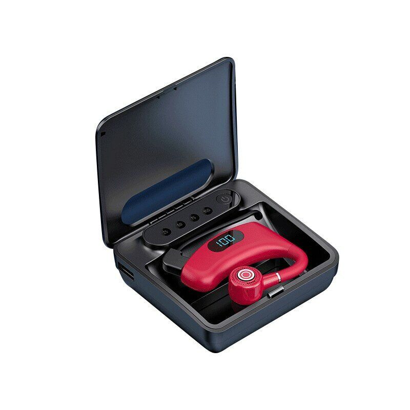 Bluetooth V5.0 écouteur Tour d'oreille sans fil Flexible HiFi Musique HD Appels Demi-in-Ear Business Drive Sports écouteurs, Rouge