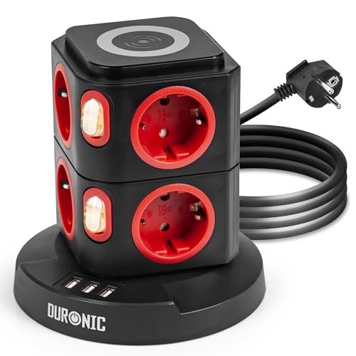 Duronic ET8W Tour Multiprise avec 3 Ports USB et Recharge sans Fil 8 Prises 3680W 13A Multiprise avec parasurtenseur Protection Contre Les surtensions Câble de 1,8 m