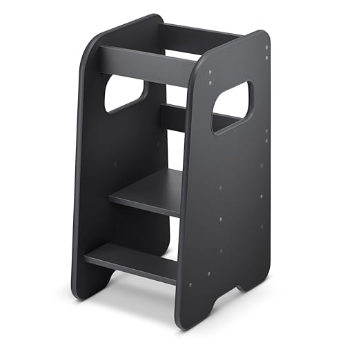 defiPad Tour d Observation Enfant Montessori - Stable & Sécurisée, Hauteur réglable sur 3 Niveaux - Tour d'apprentissage - Fabriqué en Europe - Learning Tower/Toddler Tower - Noir