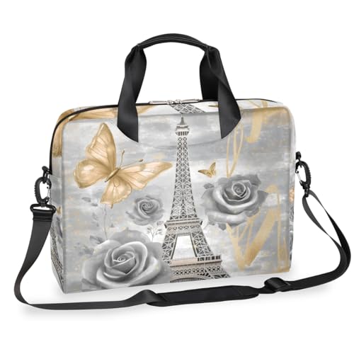 Mexpekil Sac pour ordinateur portable 15,6" 16" Gris Rose Papillon Tour Paris Sacoche pour ordinateur portable étanche Sac à bandoulière pour ordinateur portable Femme Homme
