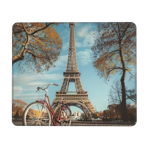 Tapis de souris rectangulaire imprimé tour Eiffel vélo pour ordinateur, tapis de souris antidérapant 25,4 x 30,5 cm, 20,9 x 24,1 cm