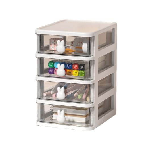NRVTRE Tour de Rangement Plastique, 2/3/4/5 Tiroirs, Petite Tour de Rangement en Plastique Tiroir avec Poignée Lapin, Idéale Rangement Bureau, Accessoires 13,4x17cm (Blanc, 4 Tiroirs, Hauteur 21cm)
