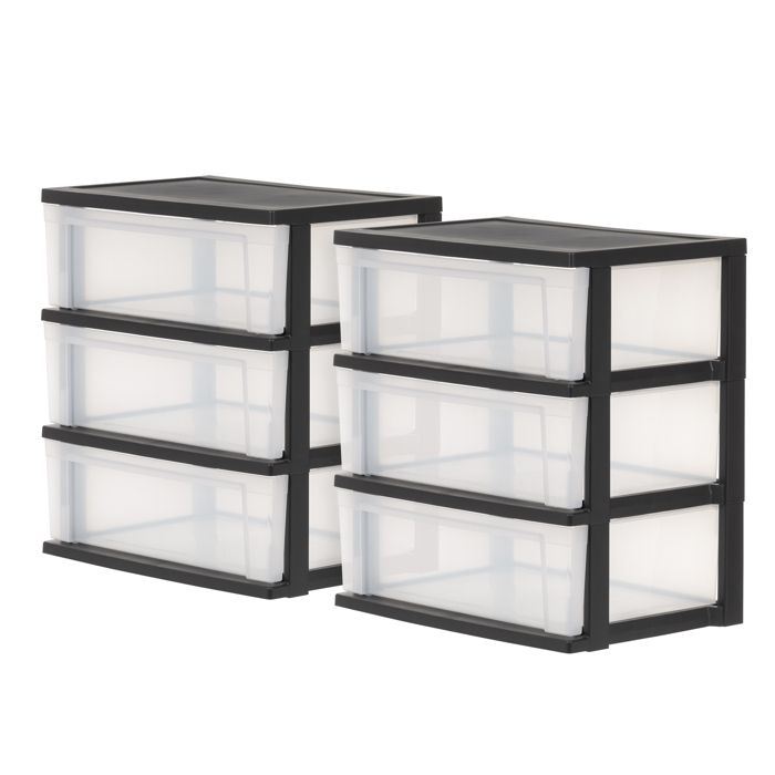 Iris Ohyama Large Tour de Rangement en Plastique 2 Tours 34L par Tiroir Noir pour Bureau Garage Chambre à coucher