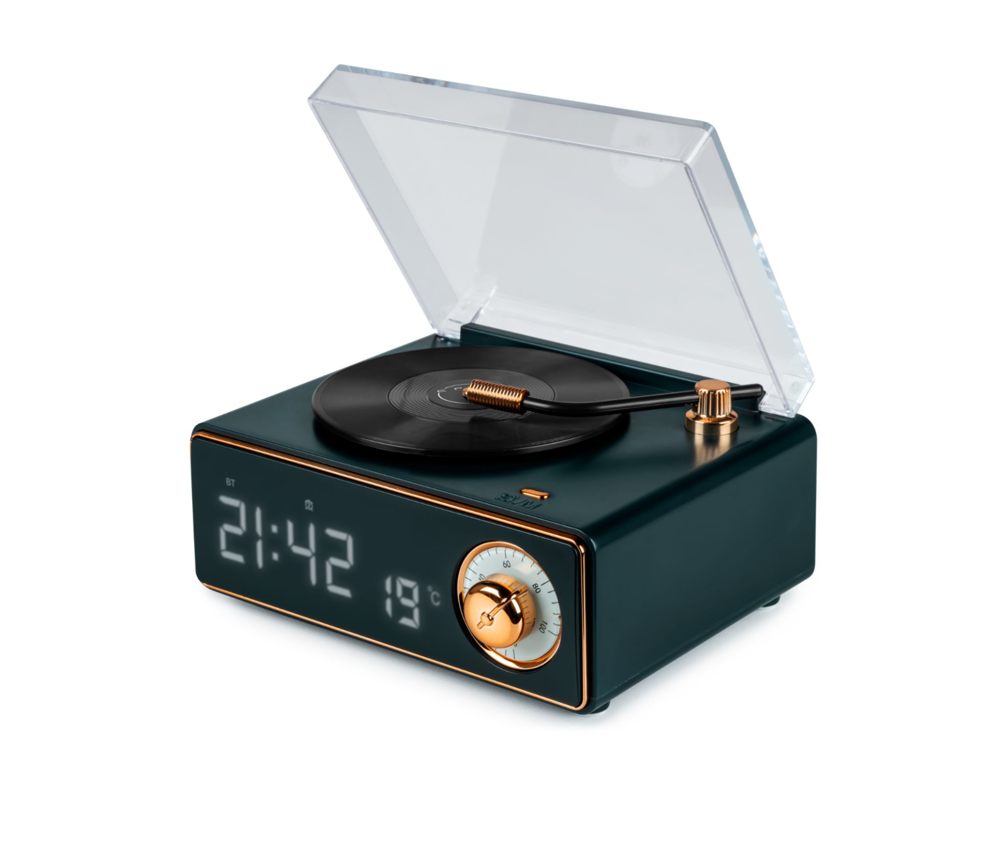 Bigben enceinte bluetooth réveil en forme de tourne disque vert foncé
