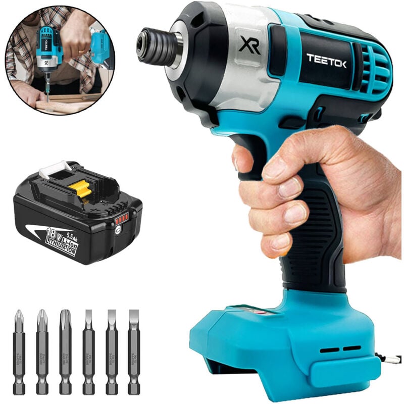 Tournevis à frapper, perceuse à percussion sans fil pour voiture, vitesse variable avec 6 embouts de tournevis + batterie 5,5 A + chargeur DC18RC,