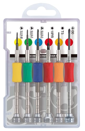 TEC HIT 321013 - Jeu de 6 tournevis de précision - 7 clés de 1,5 à 6 mm - 3 Vis Plats - 3 Vis Cruciformes - Multicolore