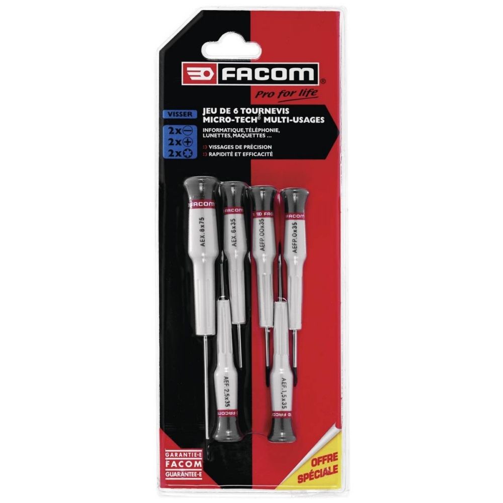 Jeu de 6 tournevis Facom pour vissage de précision