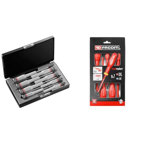 FACOM - Coffret de 8 Tournevis Micro-Tech Fente et Phillips - AEF.J3 - Tournevis de Précision & Jeu de 5 Tournevis Protwist Isolés 1000V - Tournevis - Vissage - AT5VE.PB