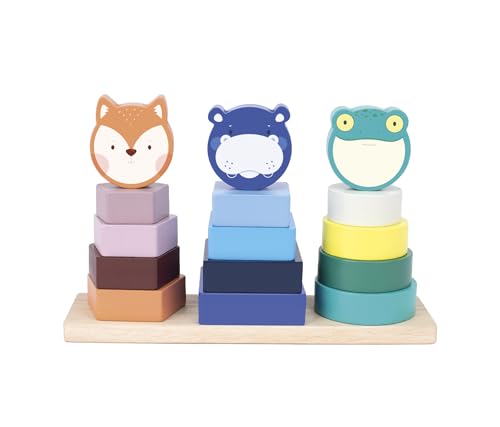 MILAN -S8428912 Tower Jouet éducatif en Bois, Tours empilables 'Animal Towers', Multicolore, à partir de 12 Mois (FACTIS, S.A. 660515)
