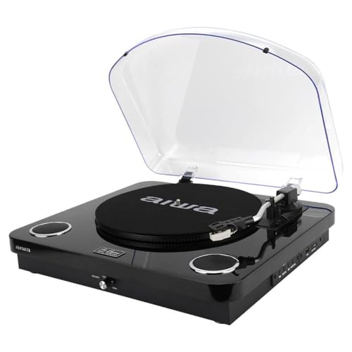 AIWA – Tourne-Disque LPS-25BK | 3 Vitesses 33/45/78 Tours; Bluetooth 5.4; Haut-parleurs intégrés 2×5W; USB/Audio RCA; Radio FM, Couleur Noir
