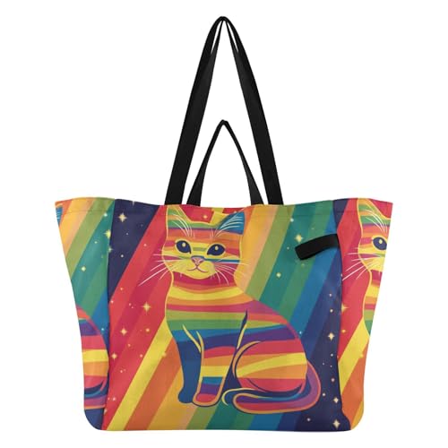 Sacs fourre-tout en toile pliables pour la cuisine, les courses, les demoiselles d'honneur, les voyages, les pique-niques, les accessoires du mois de la fierté, un chat arc-en-ciel