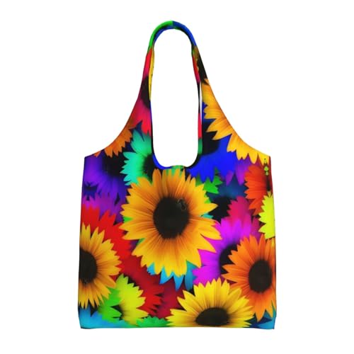 gbhJGK Sacs fourre-tout réutilisables en toile avec imprimé carte du monde antique – Sacs d'épicerie et de courses réutilisables pour voyage, plage, artisanat, vie quotidienne, Tournesol arc-en-ciel