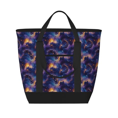 Nevjipu Grand sac d'épicerie isotherme réutilisable – Sac fourre-tout doux avec imprimé dragon du ciel violet, sac de courses isotherme pour les courses, sac de transport de nourriture portable pour