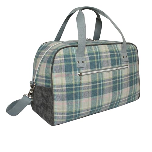 Earth Squared Sac de week-end en tweed issu du commerce équitable – Grand sac fourre-tout de voyage tartan avec sangle réglable – Sac de bagage entièrement doublé, bleu ciel
