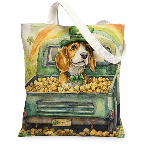 Sac fourre-tout réutilisable en toile motif chien de la Saint-Patrick pour faire du shopping, 33 x 38,1 cm, sac d'épicerie réutilisable pour femme, peinture esthétique arc-en-ciel, décoration cadeau
