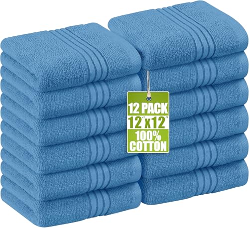 Utopia Towels - Lot de Serviettes de Toilette Premium (30 x 30 cm,) 100% Coton, Gants de Toilette/Serviette de Visage, Très Absorbants et Doux au Toucher (Paquet de 12) (Bleu Electrique)