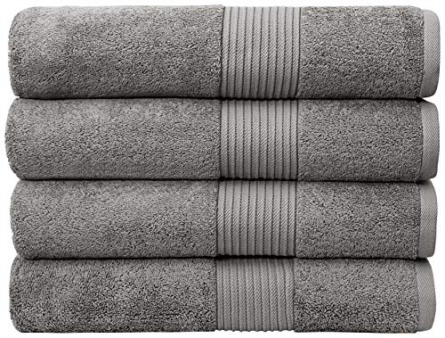 Utopia Towels - Lot de 4 Grandes Serviettes de Bain (69 x 137 cm) -100% Coton Ultra-Douces, qualité hôtelière, très absorbantes, pour la Salle de Bain la Douche la Plage et Un Usage Quotidien.(Gris)