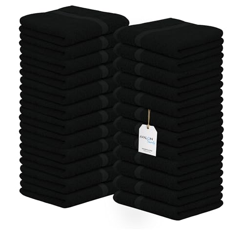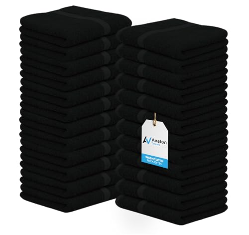 Avalon Towels Lot de 24 débarbouillettes en Coton filé à l'anneau de qualité supérieure, très absorbantes et Douces au Toucher pour Le Visage, la Cuisine et Multi-usages (Noir)
