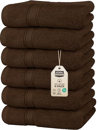 Utopia Towels - Lot de 6 Essuie Mains de Qualité Supérieure, (41 x 71 CM) 100% Coton filé, Ultra Doux et très Absorbant pour la Salle de Bain, Le Gymnase, la Douche, l'hôtel et Le Spa (Marron foncé)