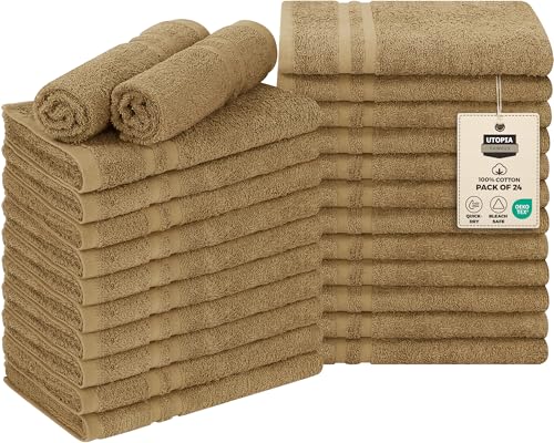 Utopia Towels Lot de 24 Serviettes 100% Coton résistantes à l'eau de Javel pour Salon et Salle de Sport, Serviettes essuie-Mains, 40,6 x 68,6 cm, Beige