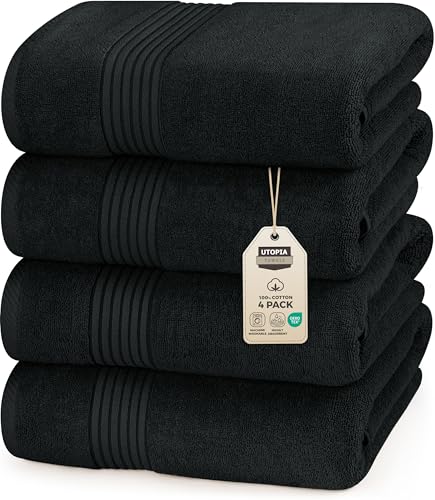 Utopia Towels Lot de 4 Serviettes de Bain (68,6 x 137,2 cm), 100% Coton filé à l'anneau, séchage Rapide, très absorbantes, Douces au Toucher, parfaites pour Un Usage Quotidien (Noir)