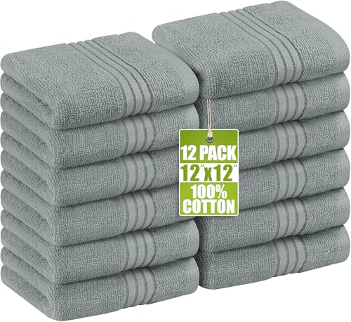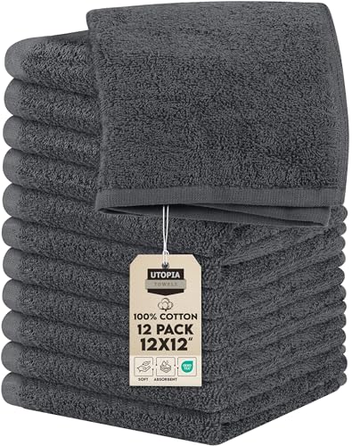 Utopia Towels Lot de 12 débarbouillettes en Coton filé à l'anneau, 100% Coton filé à l'anneau, de qualité supérieure, très absorbantes et Douces au Toucher (Gris)