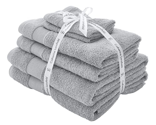 Catherine Lansfield Lot de 6 Serviettes de Bain antibactériennes en Coton Doux et Absorbant 500 g/m² Gris argenté