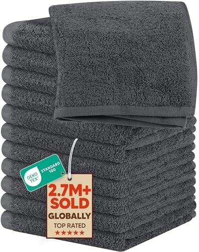 Avalon Towels Lot de 24 débarbouillettes en Coton filé à l'anneau de qualité supérieure, très absorbantes et Douces au Toucher pour Le Visage, la Cuisine et Multi-usages (Gris)