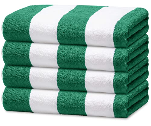 Avalon Towels Cabana Lot de 4 Grandes Serviettes de Plage surdimensionnées, 100% Coton filé à l'anneau, très absorbantes, Super Douces et à séchage Rapide, parfaites pour Offrir (Rayures Vertes)