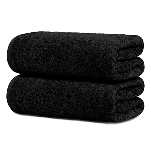 Tens Towels Lot de 2 draps de Bain 100% Coton, 88,9 x 177,8 cm, Plus légères et Super absorbantes, surdimensionnées, à séchage Rapide (Noir)