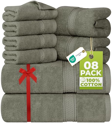 Utopia Towels Ensemble de Serviettes 8 pièces; 2 Serviettes de Bain, 2 essuie-Mains et 4 débarbouillettes - Coton - Qualité d'hôtel, Super Doux et très Absorbant (Olive poussiéreux)