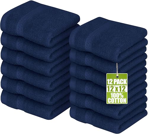 Utopia Towels Lot de 12 Serviettes de qualité supérieure pour Le Bout des Doigts - 30,5 x 30,5 cm - Bleu Marine - 600 g/m² - 100% Coton - Très absorbante et Douce