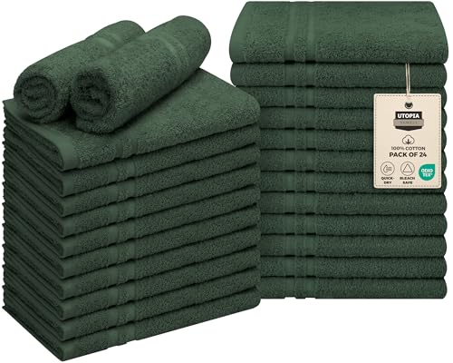 Utopia Towels Lot de 24 Serviettes de Salon en Coton résistantes à l'eau de Javel (40,6 x 68,6 cm) – sans Danger pour l'eau de Javel – Vert forêt