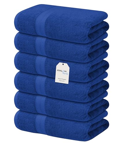 Avalon Towels Lot de 6 essuie-Mains de Luxe en Coton de qualité supérieure, Douces et très absorbantes pour Salle de Bain, 600 g/m², de qualité hôtelière et Spa, séchage Rapide (Bleu Roi)