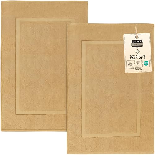 Utopia Towels - Lot de 2 Tapis de Bain en Coton de Luxe Super Absorbants pour Hotel, Spa et Maison 53 cm x 86 cm, Champagne