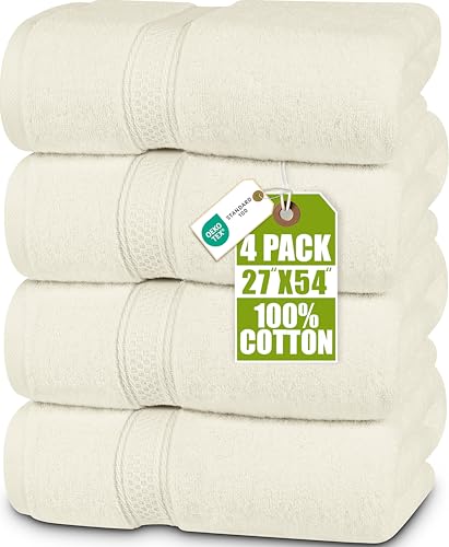 Utopia Towels - Lot de 4 Serviettes de Bain (69x139 cm) - 100% Coton filé à l'anneau, séchage Rapide, très absorbantes, Douces au Toucher, parfaites pour Un Usage Quotidien Ivorie