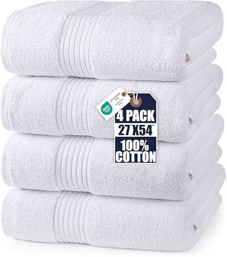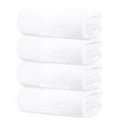 Tens Towels Lot de 4 Grandes Serviettes de Bain 100% Coton, 76,2 x 152,4 cm, très Larges, légères et Super absorbantes, séchage Rapide, parfaites pour Un Usage Quotidien (Blanc)