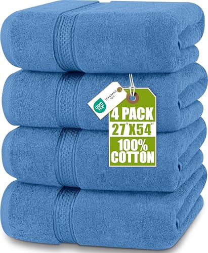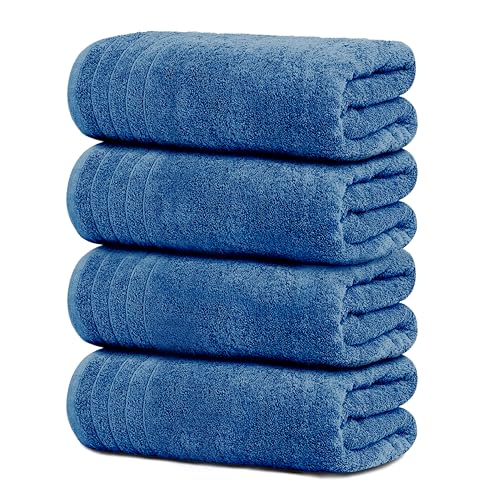 Tens Towels Lot de 4 Grandes Serviettes de Bain 100% Coton, 76,2 x 152,4 cm, très Larges, légères et Super absorbantes, séchage Rapide, parfaites pour Un Usage Quotidien (Bleu)