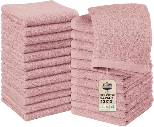 Utopia Towels -Set de Gants de Toilette (Lot de 24 - Rose poussiéreux) -100% Coton filé à l'anneau, Serviettes de Toilette 30 x 30 CM, Debarbouillette très absorbants-Petite Serviettes