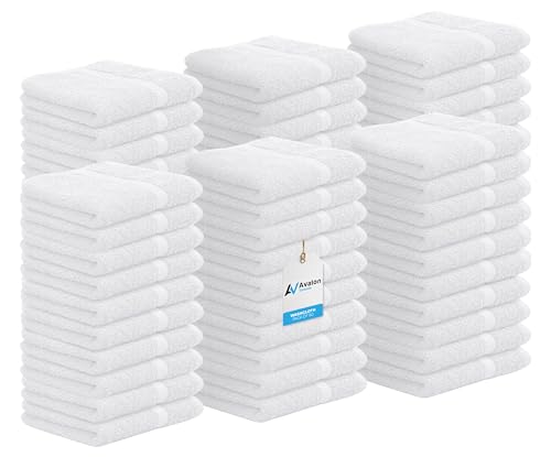 Avalon Towels Lot de 60 débarbouillettes en Coton – 30,5 x 30,5 cm, 100% Coton filé à l'anneau, absorbantes et Douces, réutilisables, de qualité hôtelière et Spa, pour Salle de Sport, hôtel et Spa,