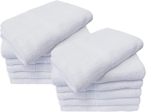 Towels N More Lot de 12 essuie-Mains 100% Coton Doux 100% Coton filé à l'anneau, très absorbants et séchage Rapide, Parfaits pour Salle de Bain, Spa et Salle de Sport (Blanc, 38,1 x 63,5 cm)