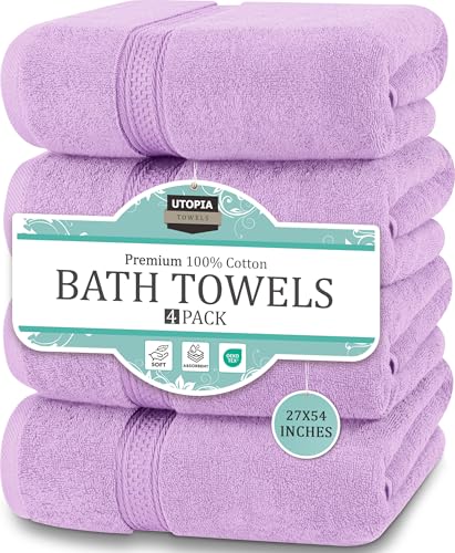 Utopia Towels - Lot de 4 Serviettes de Bain luxueuses - 100% Coton filé à l'anneau, séchage Rapide, très absorbantes, Douces au Toucher, parfaites pour Un Usage Quotidien - Lavande