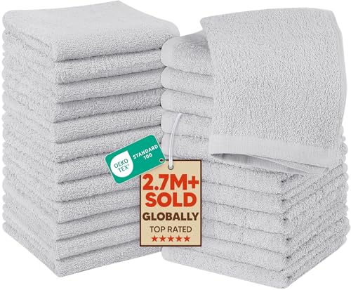 Utopia Towels -Set de Gants de Toilette (Lot de 24 - Argent) -100% Coton filé à l'anneau, Serviettes de Toilette 30 x 30 CM, Debarbouillette très absorbants-Petite Serviettes