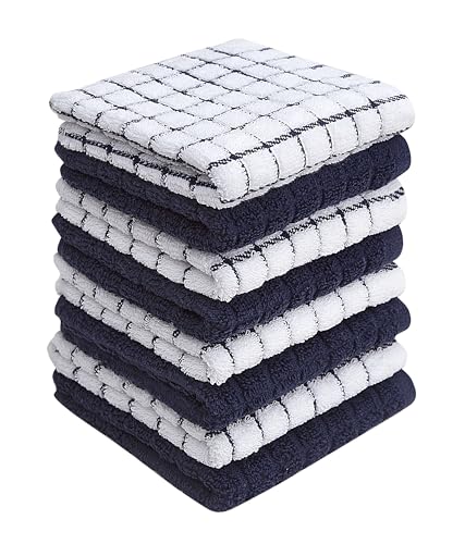 Bumble Towels Lot de 8 torchons à Vaisselle, Noir, 4 Petites boîtes de Fil Teint et 4 Solides, 0,5 kg/douzaine, 30,5 x 30,5 cm (Bleu Marine)