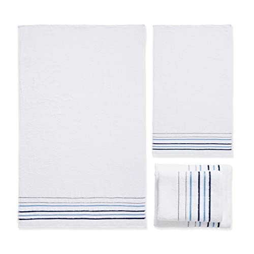 Catherine Lansfield Lot de 2 draps de Bain en Coton Doux et Absorbant Motif Rayures Java Blanc 450 g/m²