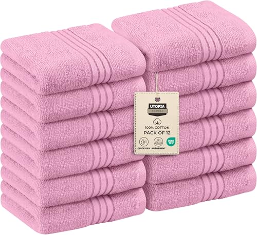 Utopia Towels - Lot de Serviettes de Luxe 30 x 30 CM Rose - Serviettes de Toilette et Gants de Toilette en Flanelle très absorbants (Lot de 12)