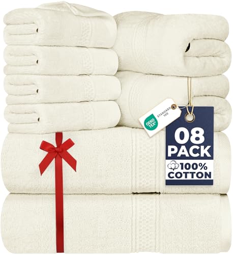 Utopia Towels Ensemble de Serviettes 8 pièces; 2 Serviettes de Bain, 2 essuie-Mains et 4 débarbouillettes - Coton - Qualité d'hôtel, Super Doux et très Absorbant (Ivoire)