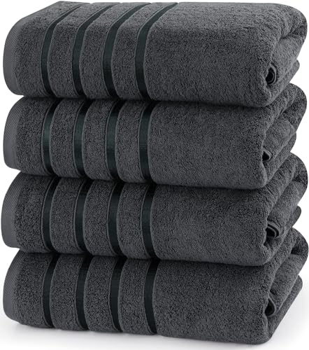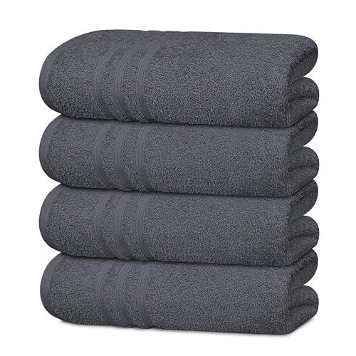 Tens Towels Lot de 4 Serviettes de Bain Gris foncé 100% Coton, 68,6 x 137,2 cm, légères et à séchage Rapide pour Salle de Bain