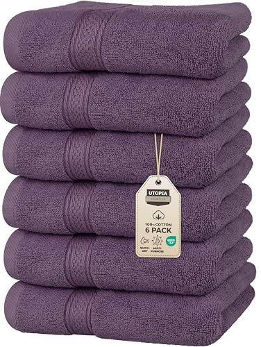 Utopia Towels - Lot de 6 Essuie Mains de Qualité Supérieure, (41 x 71 CM) 100% Coton filé, Ultra Doux et très Absorbant pour la Salle de Bain, Le Gymnase, la Douche, l'hôtel et Le Spa (Prune)